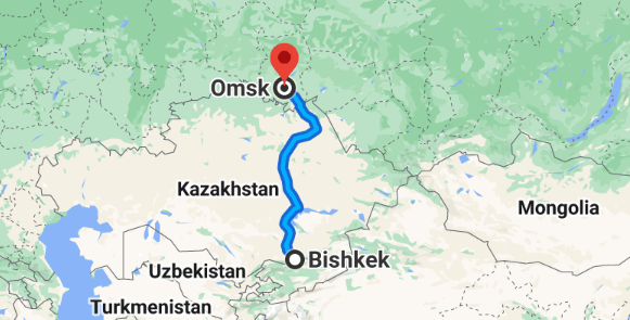 Кыргызстан – высокогорная страна, не имеющая выхода к морю. При взгляде на карту можно увидеть, что страна граничит с Китаем, а также то, что она не имеет общей границы с Россией. Расстояние между двумя ближайшими точками Кыргызстана и России, Бишкеком, столицей Кыргызстана, и российским городом Омском, составляет 1 800 км. Маршрут между ними пролегает через пограничный пункт Каракога в Казахстане.