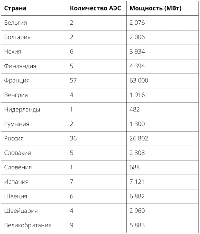 Упоминание дружественных стран станет отрезвляющим сигналом для Европейского союза. В настоящее время только 16 из 27 стран ЕС имеют атомные электростанции, и только Франция вырабатывает значительное количество электроэнергии в рамках своей ядерной энергетической программы.