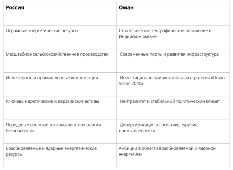 По мере укрепления Россией транспортных коридоров в Южную и Восточную Азию, оманские инвесторы могут участвовать в модернизации российских портов, складских комплексах, холодовых цепях и хабах для реэкспорта.