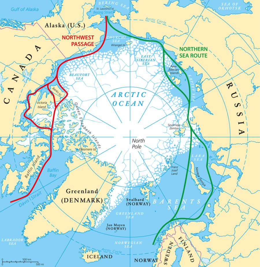 Границы СМП определены Кодексом торгового мореплавания: от архипелага Новая Земля на западе до мыса Дежнева на Чукотке. Развитие Северного морского пути подробно описано в главе 13 нашего бесплатного PDF-документа «Поворот России в Азию 2024». Его можно бесплатно скачать здесь.